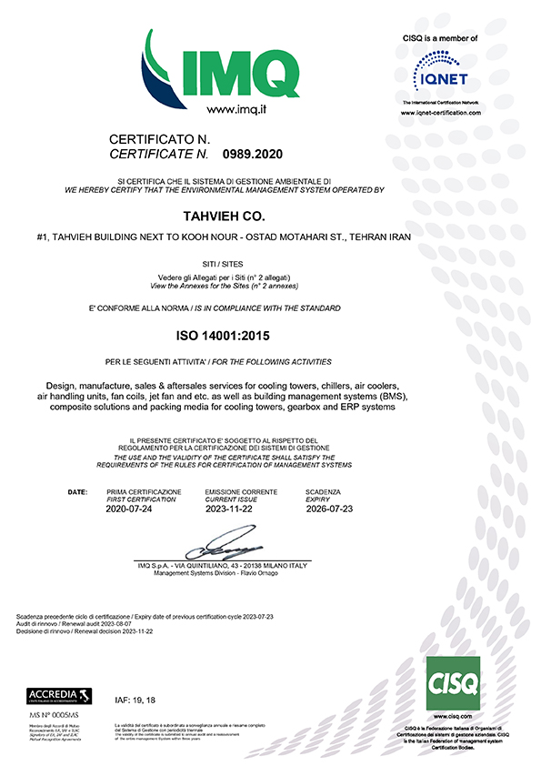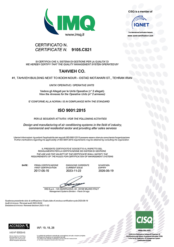 گواهینامه های ISO شرکت تهویه